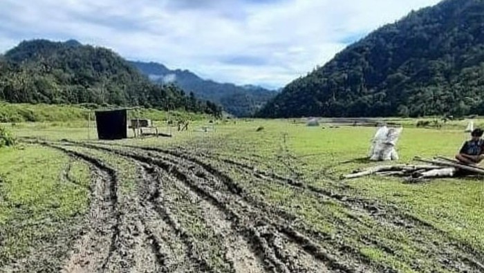 Dalam sejumlah video dan foto yang viral, tampak Lembah Salimbongan yang awalnya berupa area padang rumput di tepi sungai dan kerap dipakai sebagai tempat camping telah berlumpur.